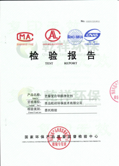艺馨复合甲醛净化剂-国家权威检测报告