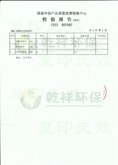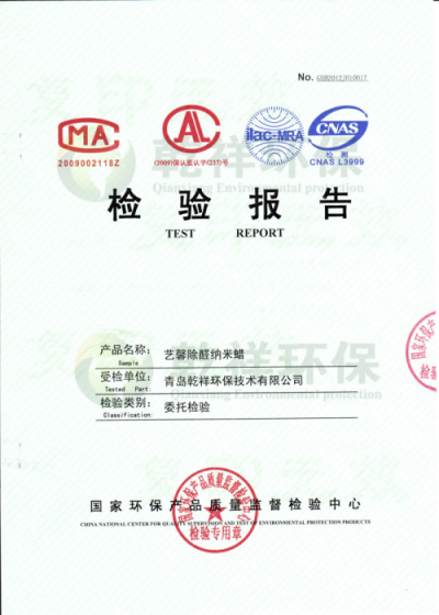 ->艺馨除醛纳米蜡-国家权威检测报告